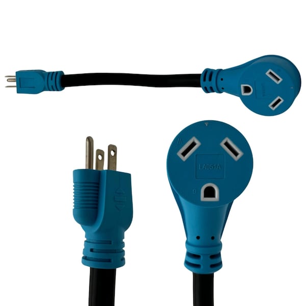 Plug Adapter, Dogbone, 14-50R/TT-30R, 5-15P, 1 ft., Black/Blue