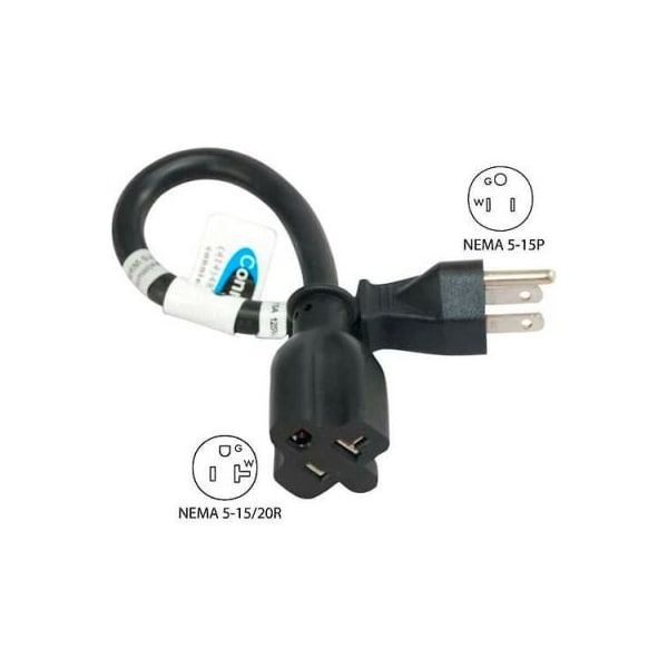 Plug Adapter, Pigtail, 5-15/20R, 5-15P, 1 ft., Black