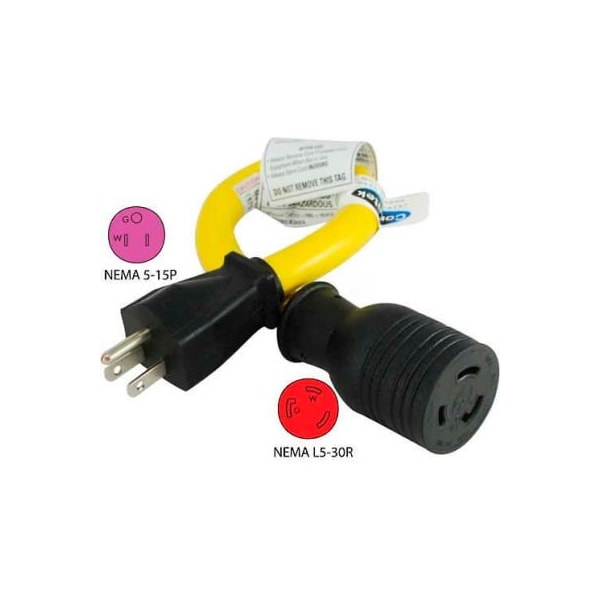 Plug Adapter, Pigtail, L5-30R, 5-15P, 1 ft., Yellow