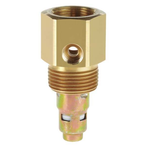 Check Valve, In Tank, Inlet (In.) 5/8 in Inverted Flare, Outlet (In.) 3/4 in (M)NPT, Brass, Max. Pressure (PSI) 500 psi, Cracking Pressure (PSI) 0.7 psi, Hex Size (In.) 1 3/16 in, Flow Range Free Air (CFM) 30 scfm, Max. Temp. (F) 450 Degrees F, In Tank Mounting, Length (In.) 2 3/4 in, Stainless Steel Spring Material, Glass Filled PTFE Poppet, PTFE Seal, In-Tank Check Valve