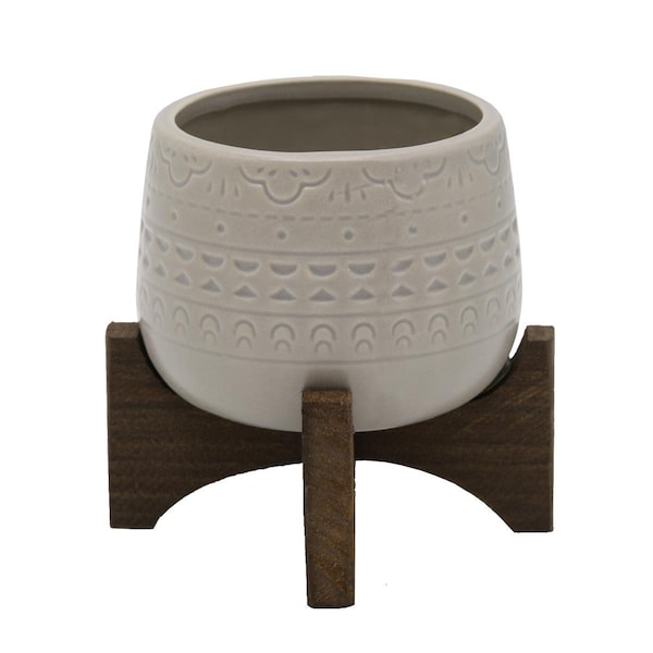3.5' Mayan Ceramic on Stand - Matte Grey