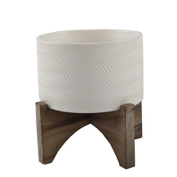 5' Arrow Ceramic Planter on Wood Stand, Matte White