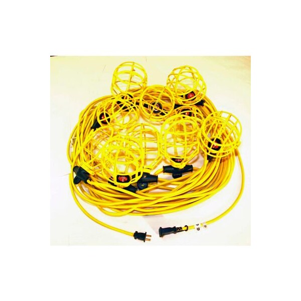 Cep 94132, 100' 14/2 sjtw string light, plastic guards 100' 14/2 sjtw string light, 10 sockets spaced 10' apart, nema 5-15 molded devices, plastic guards are pre-assembled.