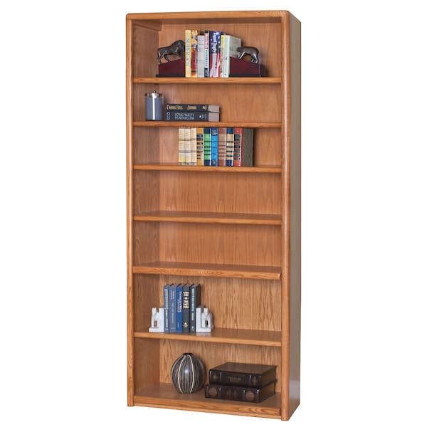Contemporary 7 Shelf Wood Bookcase in Medium Oak (Discontinued)