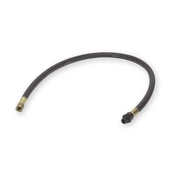 Snubber Hose, Hose Inside Dia. 1/4 in, Hose Outside Dia. 1/2 in, Hose Length 30 in, Black, Hose Tube Material Nitrile, Hose Cover Material Nitrile, Max. Working Pressure @ 70 F 300 psi, Temp. Range -20 Degrees to 180 Degrees F, Safety Factor 4:1, Hose Fitting A Material Brass, Hose Fitting B Material Brass, Hose Fitting A Type FNPT, Hose Fitting B Type MNPT, Hose Fitting A Size 1/4 in, Hose Fitting B Size 1/4 in, Hose Fitting A Gender Female, Hose Fitting B Gender Male