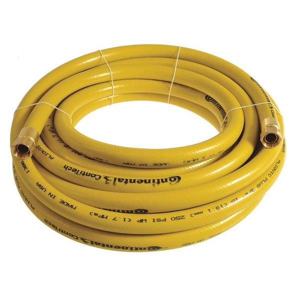 Air Hose, Hose Inside Dia. 3/4 in, Hose Outside Dia. 1 1/8 in, Hose Length 75 ft, Hose Color Yellow, Hose Tube Material PVC, Hose Cover Material PVC, Burst Pressure 1,000 psi, Max. Working Pressure @ 70 F 250 psi, Temp. Range -10 Degrees to 158 Degrees F, Hose Reinforcement Type Spiral, Hose Reinforcement Material Polyethylene, Safety Factor 4:1, Hose Fitting A Material Brass, Hose Fitting B Material Brass, Hose Fitting A Type FNPT, Hose Fitting B Type FNPT, Hose Fitting A Size 3/4 in