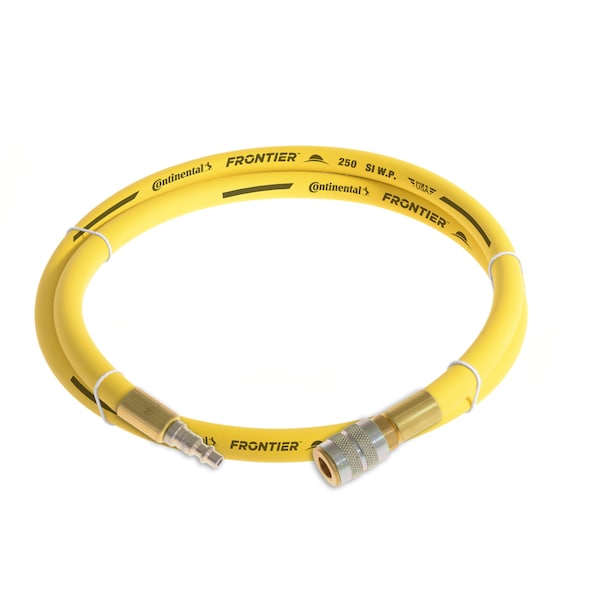 3/8" x 3' Yellow EPDM Air Hose, 250 PSI, 1/4" Ind. Interchange M+F QC