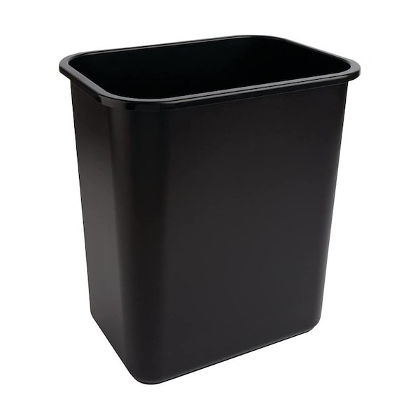 Waste Basket, 28.125 qt, Plastic, Black, 15 in H