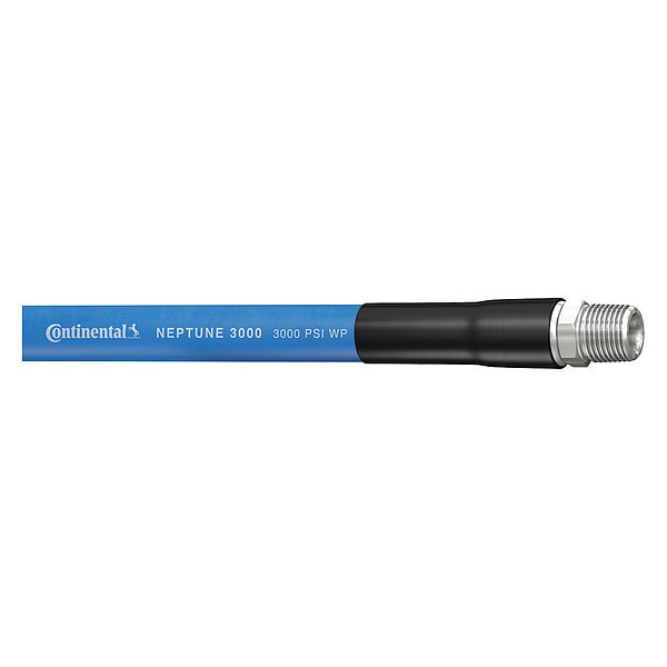 Pressure Washer Hose, Hose Inside Dia. 1/2 in, Hose Outside Dia. 0.8125 in, Hose Length 100 ft, Hose Color Blue, Hose Tube Material Nitrile, Hose Cover Material Neoprene, Burst Pressure 12,000 psi, Max. Working Pressure @ 70 F 3,000 psi, Temp. Range -20 Degrees to 250 Degrees F, Hose Reinforcement Type Braid, Hose Reinforcement Material Carbon Steel, Safety Factor 4:1, Bend Radius 5 in, Hose Fitting A Material Carbon Steel, Hose Fitting B Material Carbon Steel, Hose Fitting A Type MNPT
