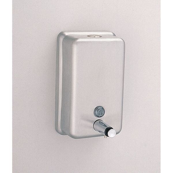Soap Dispenser, Color Steel, Mount Type Wall, Material Stainless Steel, Finish Satin, Refill Size 40 oz, Operation Mode Manual