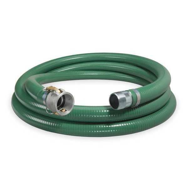 Water Suction and Discharge Hose, Hose Inside Dia. 1 1/2 in, Hose Outside Dia. 1 13/16 in, Hose Length 10 ft, Hose Color Green, Hose Tube Material PVC, Hose Cover Material PVC, Burst Pressure 267 psi, Max. Working Pressure @ 70 F 89 psi, Temp. Range 0 Degrees to 158 Degrees F, Standards 3-A, FDA, USDA, Hose Reinforcement Type Helix, Hose Reinforcement Material PVC, Safety Factor 3:1, Bend Radius 6 in, Hose Fitting A Size 1 1/2 in, Hose Fitting B Size 1 1/2 in, Hose Fitting A Material Aluminum