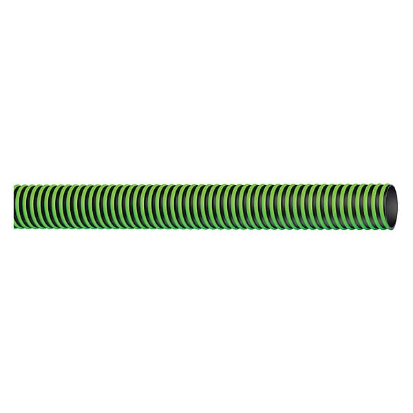 Water Suction and Discharge Hose, Hose Inside Dia. 2 in, Hose Outside Dia. 2 3/8 in, Hose Length 10 ft, Hose Color Black, Green, Hose Tube Material TPE, Hose Cover Material Polyethylene, Burst Pressure 150 psi, Max. Working Pressure @ 70 F 50 psi, Temp. Range -40 Degrees to 180 Degrees F, Standards 3-A, FDA, USDA, Hose Reinforcement Type Helix, Hose Reinforcement Material Polyethylene, Safety Factor 3:1, Bend Radius 5 3/16 in, Hose Configuration Bulk Hose, Vacuum Rating 29 in of Hg