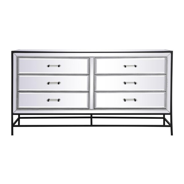 60 in. Mirrored 6 Drawers Chest, Black