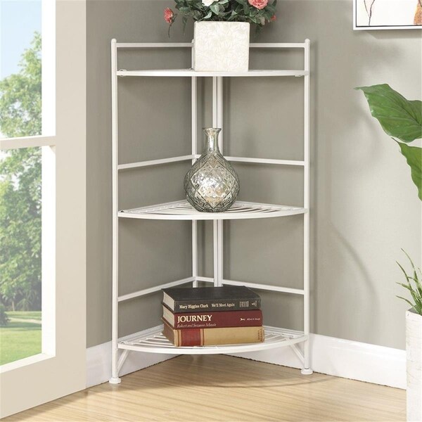Designs-2-Go 3-Tier White and Black Metal Folding Corner Shelf, White (Discontinued)