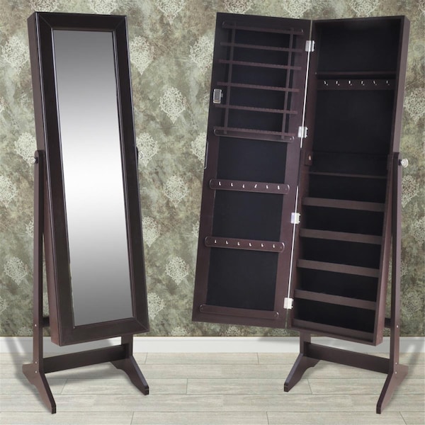 Jewelry Cabinet with Mirror Free Standing, Brown