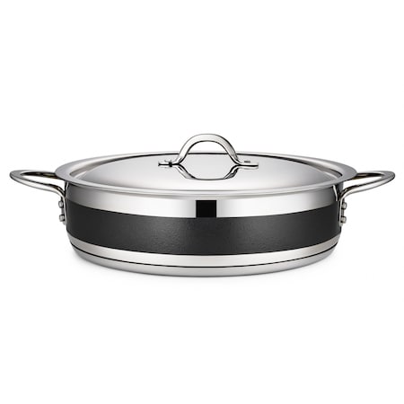 Cucina Casserole Pot W/ Lid, Hammered Finish, Ind Btm, 8 5/8"Dia X 4 1/4"H, 2 Sq Hndls, 3 Qt
