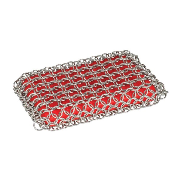 Chainmail Heavy Duty Cast Iron Scrubbing Pad, Red & Silver - 8.71 in.