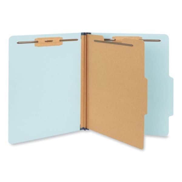 Four-Section Pressboard Classification Folders - 1 Divider - Letter Size - Light Blue, 20PK