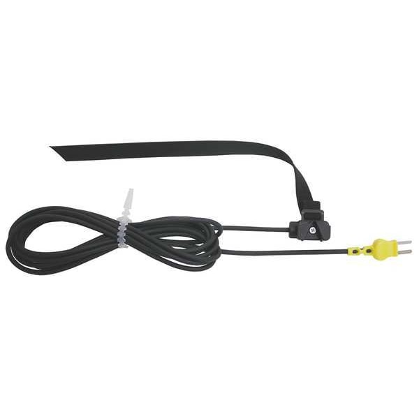 Pipe Strap Surface Temperature Probe, Type K, Grounded, For Application Surface, Mini Plug, Cable Length 10 ft, -25 Degrees to 300 Degrees F/-32 Degrees to 149 Degrees C, Thermocouple