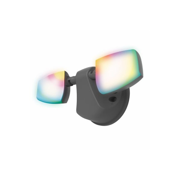 2400Lumen The ESF WIZ LED floodlight in black incorporates WIZ smart lighting control into a durable twin head design for an advanced smart outdoor lighting solution built for high performance. Featuring a multitude of configurable settings including grouping scheduling dimming white tuning and color tuning the ESF WIZ does not require a hub and can be wirelessly controlled directly from any compatible smart device utilizing the WIZ app.