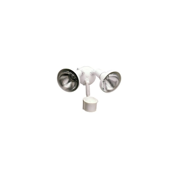 White, 180 Degree, Motion Activated Regent Security Flood Light, With Strong Die Cast Metal Lampholders & Cover Plate For Extra Long Life, Lamp Covers Add A Decorative Look & Help Protect Bulbs From Outside Elements, Convenient Tool Free Lamp & Sensor Head Adjustment, 30 Motion Detection Zones, Can Be Operated In 2 Different Modes, Mode 1, Light Comes On Only When Motion Is Detected, Mode 2, Light Can Be Operated In Manual Override & Turned On From Indoor Switch, Automatically Resets At Dawn To Motion Detecting Mode, Detects Motions Up To 70ft , Large Oversized Knobs For Easy Setup & Adjustment, Adjustable Time & Sensitivity Settings, For Wall Or Eave Mounting, Center Mount Screw For Easy Installation, Uses Two 100W Maximum Par 38 Incandescent Bulbs Not Included, Energy Star Rated.