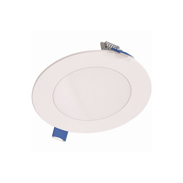4 white, round, LED direct mount retrofit kit Designed for direct installation into 12 to 114 drywall using attached spring clips Can come in direct contact with insulation not recommended for use with spray foam insulation Includes remote junction box Fixture outputs up to 800 lumens, and features 35,000 hours of life, selectable color temperature 3000K, 4000K, and 5000K, 90 CRI, and is dimmable to 10 with 120V dimmers Damp and wet location listed in showers and protected ceilings Fixture is Energy Star rated and comes with a