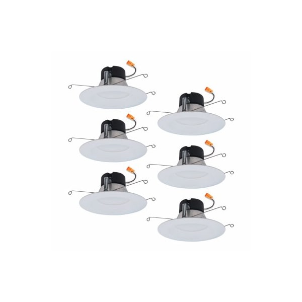 6 Pack, 56, LED retrofit baffle trim White finish Retrofits into existing 5 or 6 housings For new construction and remodel 600 lumens, Selectable 90 CRI, CCT 2700K, 3000K, 3500K or 3000K, 4000K, 5000K Dimmable down to 10 Wet location listed