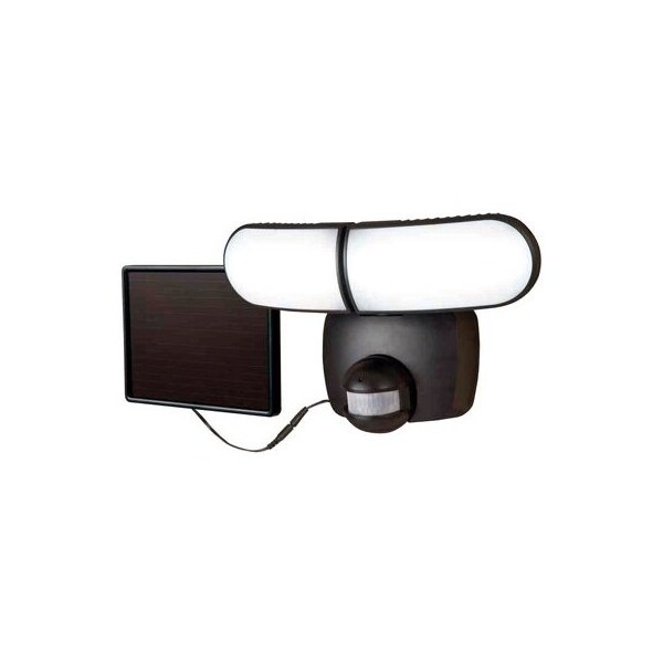 1,000 Lumens, Dual Head, Solar Powered, LED Motion Light, Sensor Detects Motion 180 Degree, Up To 70', Over Equal To 90W Incandescent, 5,000 Kelvin Color Temperature, 6 x 8 Solar Panel With 16' Cord, Adjustable Time Setting Of 1 To 3 Minutes, Integrated Photo Control Prevents Light From Turning On During The Day