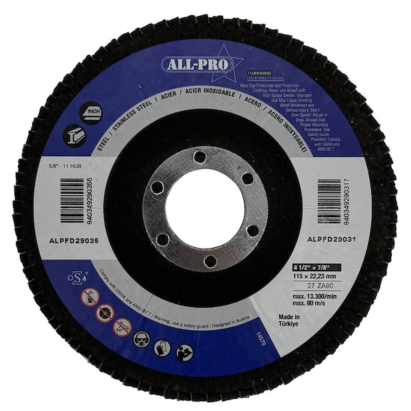 Flap Disc, 4 1/2", 7/8", ZA, T27, 80 Grit, 10PK