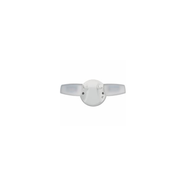 Halo twin head LED outdoor security floodlight, 1420 lumens, 4000K.Rust-free polycarbonate housing.White finish.120 volt.Integrated LEDs are rated at 50,000 hours of maintenance free operation.Wall or eave mount to recessed junction boxes.Rated for damp and wet locations.This flood light is ideal for walkways, yards, patios, play areas and driveways.Diffused lens is fully gasketed to keep out moisture, dirt, bugs and other contaminants