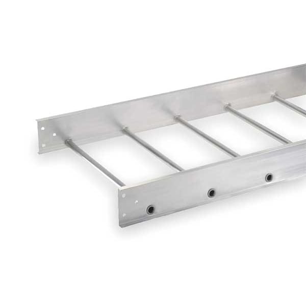Ladder Tray, Width 24 in, Height 5 1/4 in, Load Depth 4 in, Material Aluminum, Length 12 ft, Capacity 75 lb. per ft., 12 ft. Span, Includes Splice Plates and Hardware, Standards NEMA VE-1, Flange Width 13/16 in, Rung Spacing 9 in