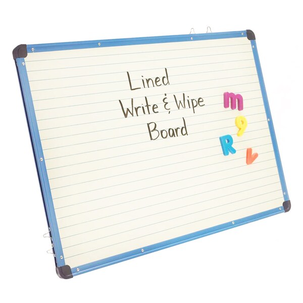 The Copernicus Educational magnetic lined dry erase board features solid blue lines spaced 1 inch apart and is ideal for teachers or students. This Copernicus lined dry erase board comes with adjustable hooks for hanging from any of our teaching easels. This lined dry erase board is functional, allows you to save paper and prevents any mess from chalk dust while teaching. The Copernicus educational dry erase board has lines you can write neatly and legibly.
