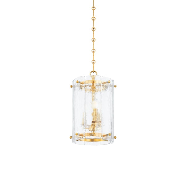 With hand-blown Piastra glass, this statement pendant reimagines a traditional lantern as an aquatic vision. Resembling water, the ripped glass silhouette diffuses and reflects the light coming from within. Vintage Brass pins and chains suspend the fixture, bringing a sense of the old world to the contemporary materiality. Available in three sizes as a lantern or as a flush mount. *Due to the one-of-a-kind nature of the medium, exact colors and patterns may vary slightly from the image shown.