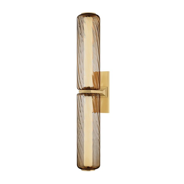 As memorable as the Tuscan sun, this wall sconce is characterized by a slender, elongated silhouette made from eye-catching clear topaz swirl glass. A full-length LED tube illuminates each shade, creating a sense of movement as light diffuses through the twisted glass. A smooth metal band finished in Vintage Brass cinches the center, adding a moment of visual rest to balance the fixture’s maximalist scale. Tuscany transitions beautifully from living spaces to bath and powder rooms.