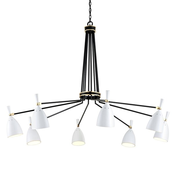 Utopia 8 Light Chandelier 63.5 In. Black Brass Off White Shades