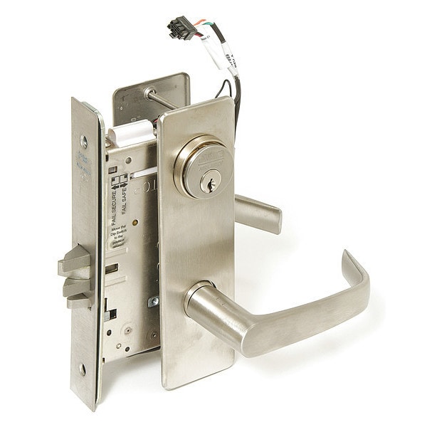 Mortise Lockset, Style Non-Handed, Function Fail Secure, Location Type Commercial, Electrical, 12/24V DC, Trim Style Escutcheon, Backset 2 3/4 in, Strike Type ANSI, Strike Dim. 4-7/8 in x 1-1/4 in, 3 hr Fire Rated, Series ML20900, Case Material Heavy Gauge Steel, Satin Stainless Steel Finish, Case Size 8 in x 1-1/4 in x 4 in, Required Door Thickness 1 3/4 in, For Use With Access Control, Power Supply, Power Transfer Device, Grade 1, Pins 6, Keying Keyed Different, Keyway Type L4