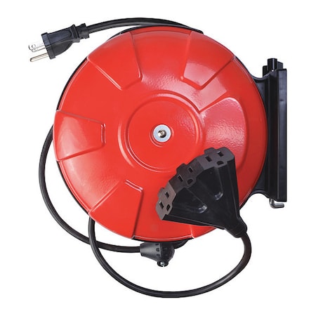 Cord Reel, Spring Retracted, 12 AWG, 50 ft Length, 1 Outlets