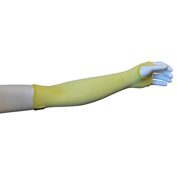 Kevlar has a tensile strength five times stronger than steel on an equal Weight basis. Cut-resistant Kevlar yarn offers a high temperature resistance and will not support combustion. Sleeves made with Kevlar are available in a variety of gauges, coatings and Length s to address a multitude of industrial applications. This 100% Kevlar cut-resistant sleeve is singly ply and offers an 18-inch Length , thumb slot and A2 cut level
