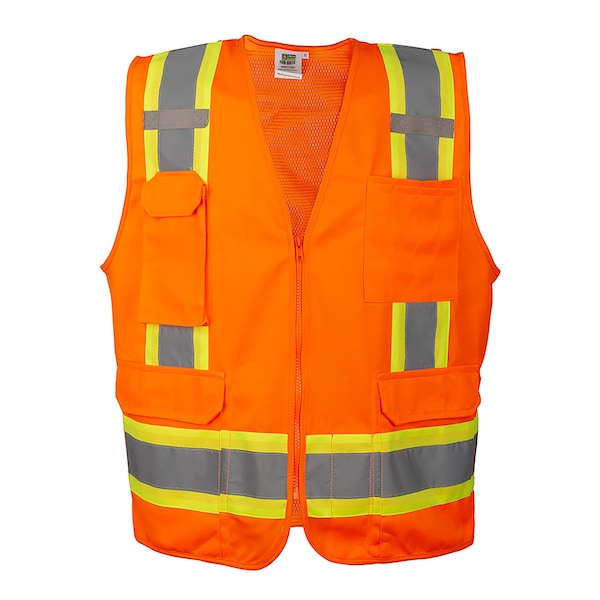 COR-BRITE Surveyor Vests, Orange, Solid Front Fabric & Polyester Mesh Back