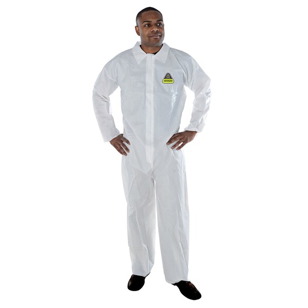 Cordova Safety Products brand DEFENDER protective clothing is constructed of tough, composite fabric that combines breathable microporous film and soft non-woven polyolefin. It provides an effective barrier against particulates, aerosols, and liquids while maintaining comfort. It is designed for work environments where hazardous and non-hazardous liquid and dry particulate contaminants may be present. This Defender, microporous, disposable coverall features serged seams, a zipper front and collar, and elastic wrists and ankles. Sold in CS of 25