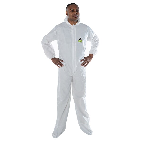 Cordova Safety Products brand DEFENDER protective clothing is constructed of tough, composite fabric that combines breathable microporous film and soft non-woven polyolefin. It provides an effective barrier against particulates, aerosols, and liquids while maintaining comfort. It is designed for work environments where hazardous and non-hazardous liquid and dry particulate contaminants may be present. DEFENDER II is a lighter, cooler version of the original. This Cordova Safety Products-brand DEFENDER II, microporous, disposable coverall features serged seams, a zipper and collar, a hood and boots, and elastic waist, ankles, and wrists. Sold in CS of 25