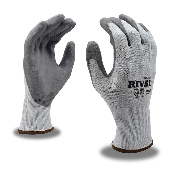 High-performance gloves are machine knit constructed of high-strength yarns that provide increased levels of dexterity and abrasion- and cut-resistance. Most feature coatings to increase the durability and gripping power. High Performance Polyethylene HPPE has a tensile strength 15 times stronger than steel on an equal Weight basis. Gloves made with HPPE are lightWeight , comfortable and abrasion- and cut-resistant. Tests have shown that gloves made with HPPE fibers have up to 20 times the abrasion resistance of gloves made with spun Aramid yarns. The CORDOVA-brand Rival glove features a gray, 13-gauge HPPE shell and gray polyurethane PU palm coating. It offers an A2 cut level