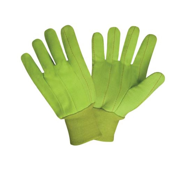 High Visibility, Lime Green, Double Palm Gloves, Cotton Corded Canvas Fabric, Clute Pattern, 12PK