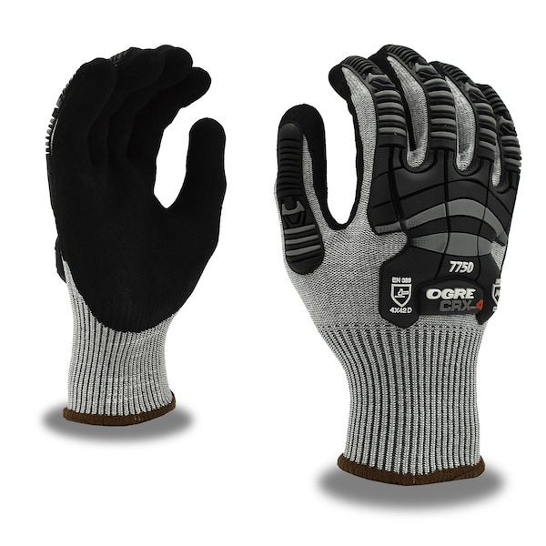 OGRE stands for Oil, Gas & Refining Equipment. The Cordova Safety Products OGRE brand gloves are designed for those down and dirty jobs that require gripping power and impact protection. The OGRE CRX-4 glove protects against a wide-range of hazards. It features a 13-gauge, dark gray, CRX fiber shell. CRX fiber contains no glass or steel and is more comfortable than cut-resistant gloves reinforced with glass or steel fiber. The OGRE CRX-4 also provides a black, sandy-nitrile palm coating, sonic-welded TPR protectors and touchscreen compatibility. It is rated ANSI Cut Level A4 and ANSI Impact Level 1. View all OGRE gloves