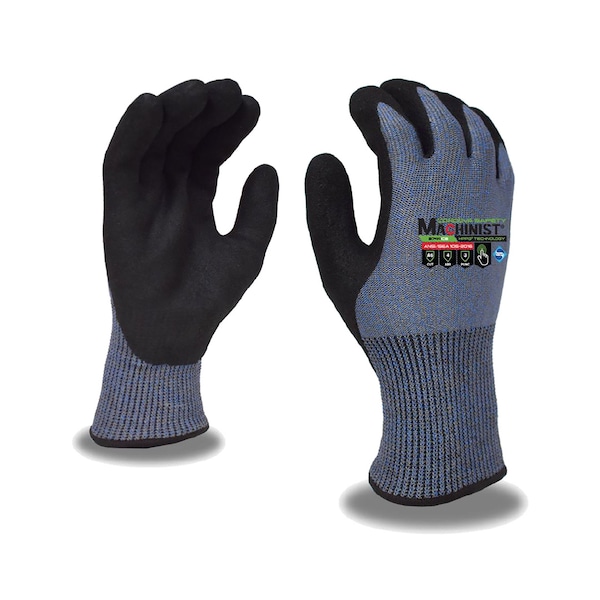 MACHINIST ICE, BLUE TWO-LAYER HPPG2 INSULATED SHELL, 15-GAUGE, SANDY NITRILE PALM COATING, TOUCHSCREEN FINGERTIPS, ANSI/ISEA 105-2016 CUT LEVEL A6