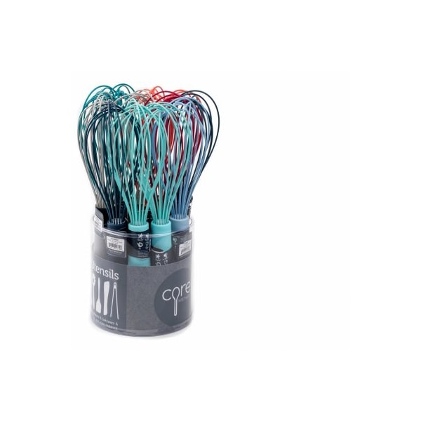 CDU Silicone Whisk Small Bucket This whisk adds air to cream, sauces and eggs It is great for nonstick cookware and will not scratch the surface Resistant to odor and stains Comfort grip handle for easy use 12 whisks in the bucket and 7 color variations