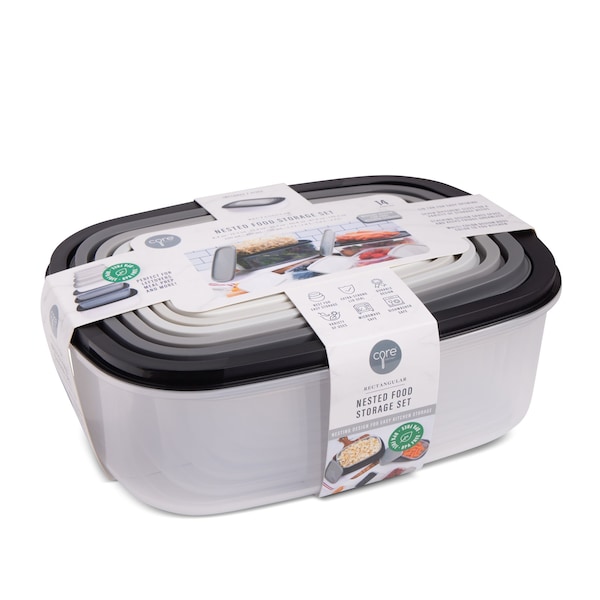 14pc Rectangular Food Storage Bowl Set - Black Ombre