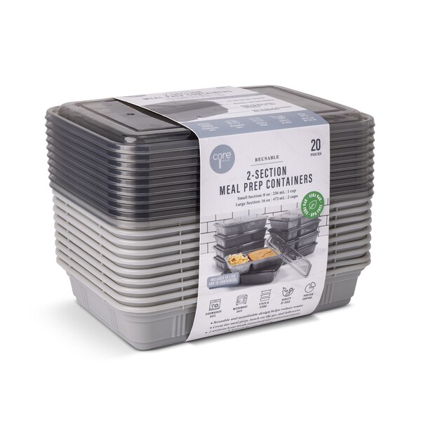20pc 24oz 2-Section Colored Meal Prep Containers - Overcast