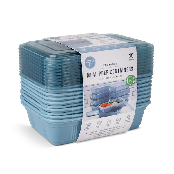 20pc 31oz Colored Meal Prep Containers - Ocean