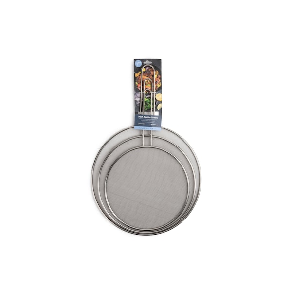 Three different sizes to fit a wide range of cookware. Prevents splatters and promotes air circulation for steaming, frying and simmering. Fine mesh construction keeps oil and sauces contained. Protects countertop and stove tops from splattering grease.